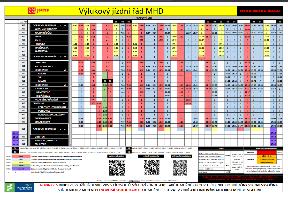 Provoz linek MHD 845101, 845102 a 845104 bude v uvedeném období veden rovněž po objízdné trase ulicí Malá v Novém Městě na Moravě.